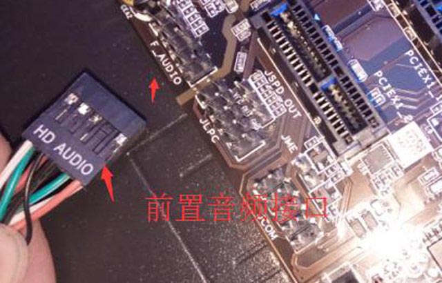HD AUDIO前置音频接口是对应接入主板上AUDIO标识上,这个不插,机箱前面耳机插孔是没有声音的。