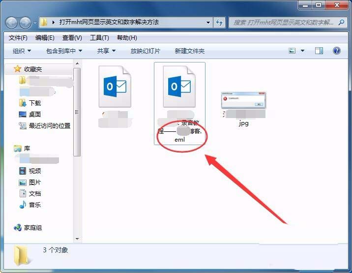 1、将mht网页文件的扩展名更改为eml,如下图所示。