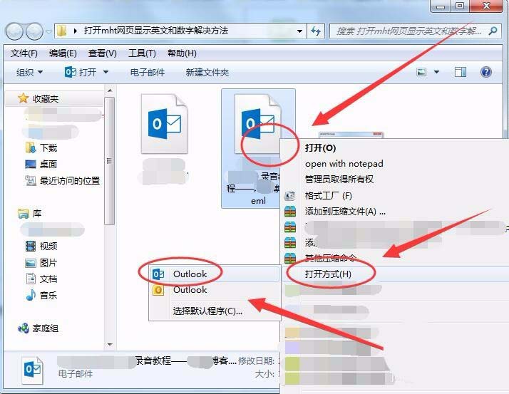 2、在文件上右击,选择打开方式中的Outlook选项。
