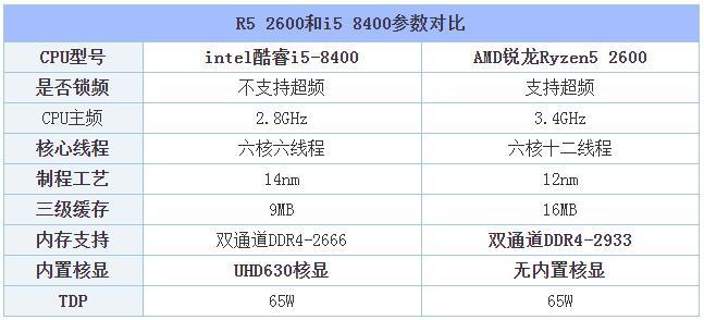 i5-8400与Ryzen5 2600参数对比