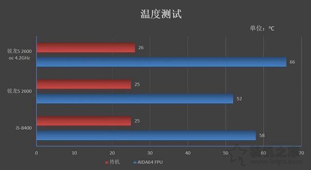 虽然R5 2600采用了先进的12nm工艺制程,不过在功耗与温度上,i5-8400相对更有优势,可能是R5 2600多了6个线程,并支持超频,所以发热上会大一些。