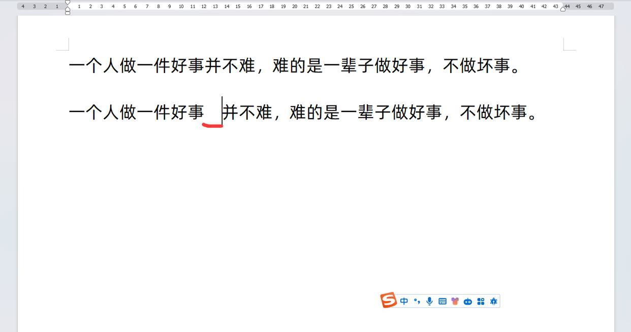 - 如果要输入半角空格,直接按空格键就可以,不管输入法是中文输入状态还是英文输入状态。