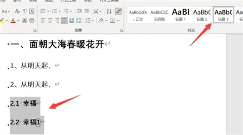 3、三级标题内容设置为标题3的样式,往下还有其他级别标题的就继续往下设置样式即可。