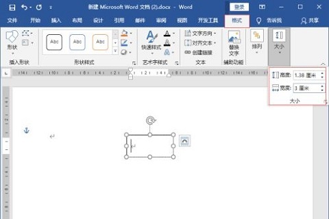 2、然后,点击选中插入的文本框,在“绘图工具”-“格式”-“大小”中设置文本框宽度和高度;