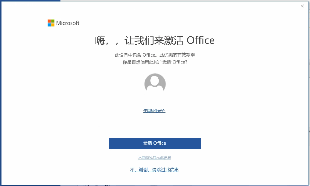 3. 系统激活后,建议您联网使用 1 小时后再进行 Office 激活,以免因网络不畅,而导致激活失败。