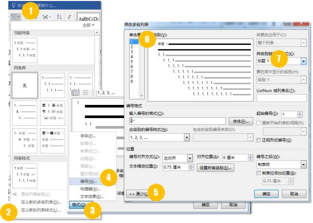 在开始段落菜单栏找到【多级列表】-【定义新的列表样式】-【格式】-【编号】-【更多】点击要修改的级别1,将级别链接到样式【标题1】。同理,级别2-标题2,级别3-标题3,通常到5级标题就差不多完全够用了。