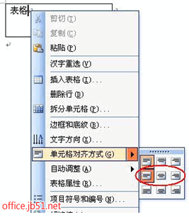 选中表格中的文字,单击“表格”菜单\表格属性\选择“单元格”小选项,选择你所需的对齐方式即可。居中对齐为中间的那个下面有文字的!