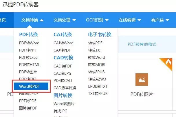 1、百度搜索“迅捷pdf在线转换器工具”,选择文档转换中的“word转pdf”选项;