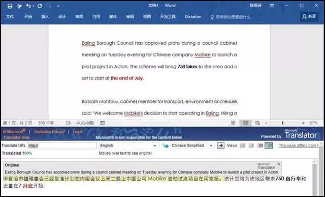 和在网页上翻译相比,它最大的优点是可以保持文档的原有格式。