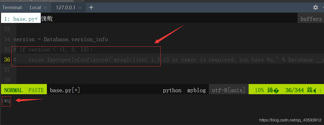 使用vim进入/home/pyvip/.virtualenvs/myblog/lib/python3.6/site-packages/django/db/backends/mysql/operations.py中