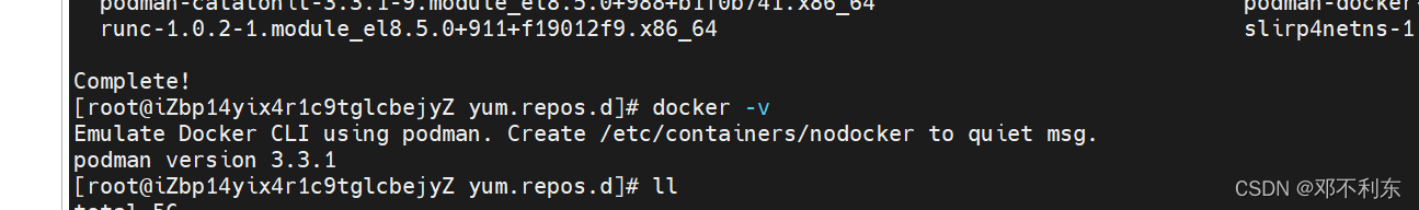 第三步查看docker版本后,发现是podman,而不是docker,也就是说,目前我配置文件里配置的yum源里面,没有docker。