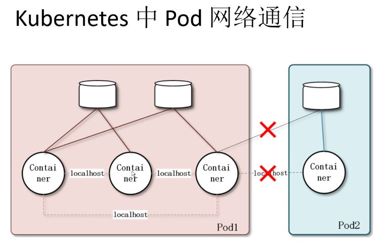 同一个Pod直接的容器可以通过localhost互相访问,并且可以挂载Pod内所有数据卷。不同Pod之间的容器不能用localhost访问,也不能挂载Pod内所有数据卷。