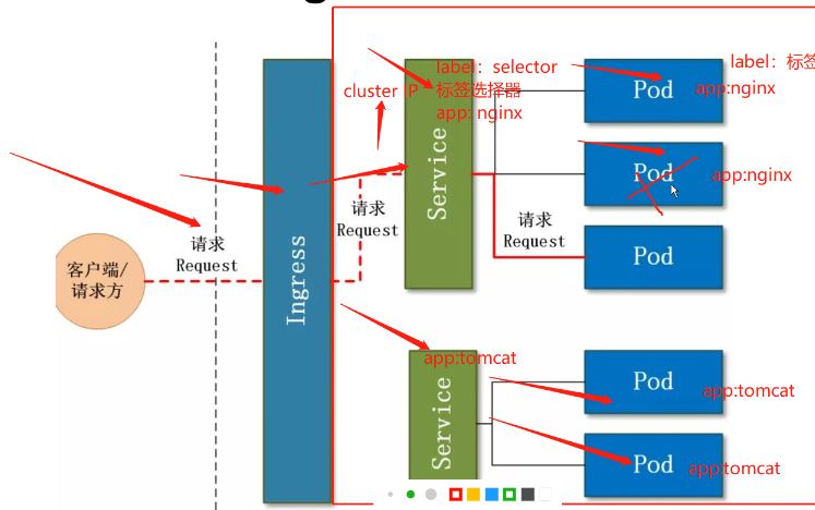 service负责K8s集群内部的网络拓扑(四层)、Ingress 是 K8S 集群里工作在 OSI 网络参考模型下,第7层的应用,对外暴露的接口,典型的访问方式是 http/httpsService 只能进行第四层的流量调度,表现形式是 otpot。Tnores 则可以调度不同业各域、不同uRL访问路径的业条流量比如: 客户端请求 http://www.kqc.com;port——Ingress——Service—— Pod (nginx )