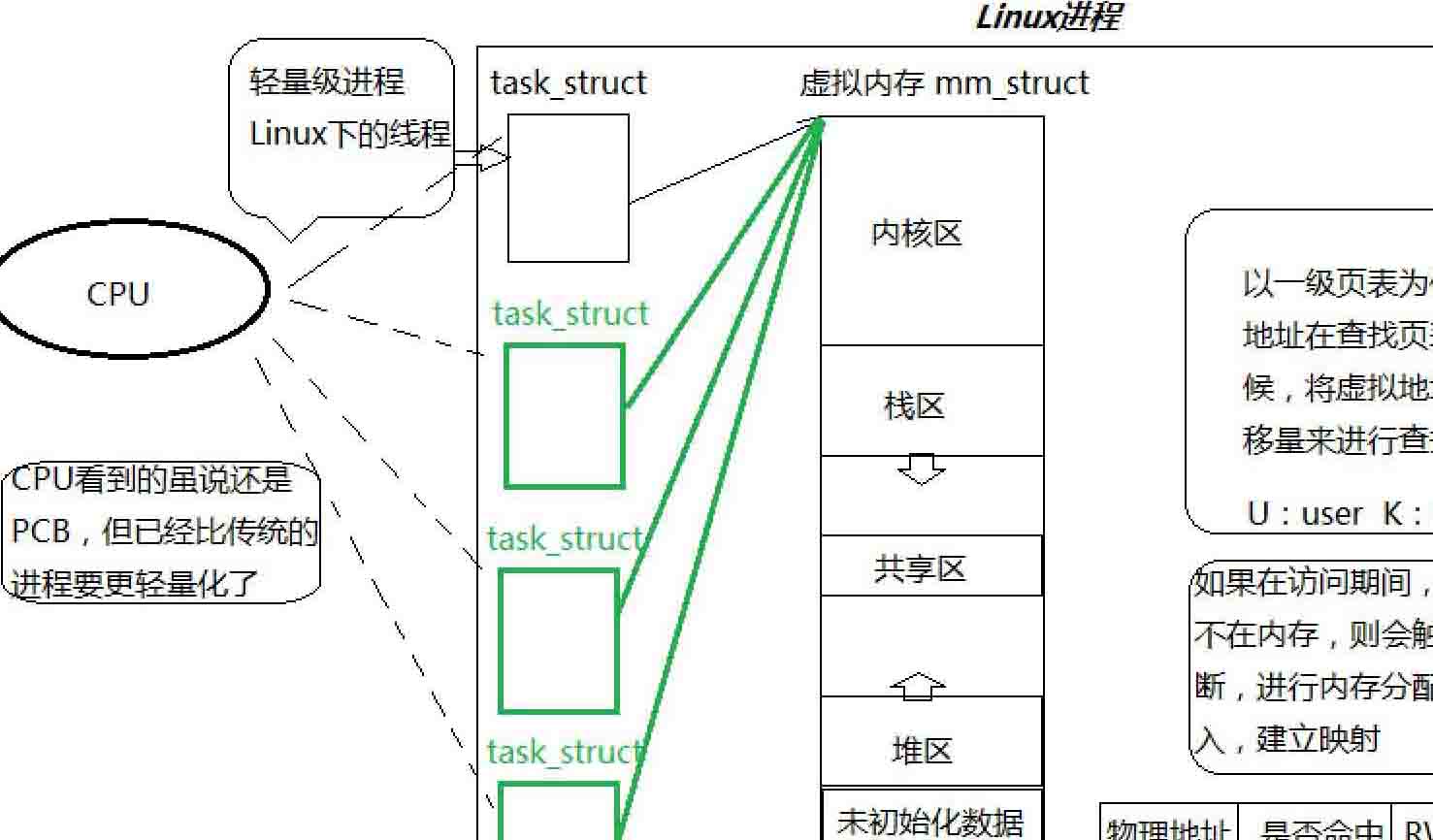 - Linux当中线程和进程都会被 操作系统调度,那么现在的问题是,是否需要重新设计一个线程的结构呢?事实上从Linux的操作系统设计模式中可以看出并没有这样做,而是把之前对于进程的相关字段都重新复用了起来,也就是说Linux中的线程设计是完全用进程来进行模拟的,站在CPU的角度来说,当它拿到一个具体的PCB结构执行流的时候,它认为自己将来在CPU上跑的时候的执行的那个PCB,是要比传统意义上理解的那个单个进程PCB是不一样的,最起码是小于等于单PCB的进程,所以自此之后,可以换一个角度去看Linux中的进程,可以把进程线程都看做事一个轻量级的进程,这个轻量级的进程指的就是单纯这个PCB,而对应的整个地址,比如有地址空间页表等等信息,这些全部加起来就叫做是真正意义上的进程,而并非是轻量级进程