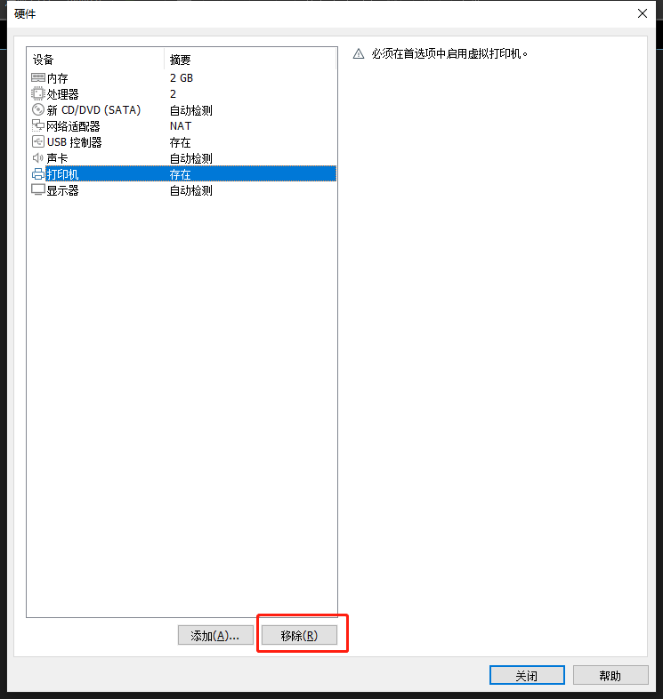 移除打印机(虚拟机要这玩意儿没用,占空间)