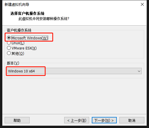 版本选择Windows 10 x64(因为VMware16还没有Win11,所以我们这里选择Win10就好啦)