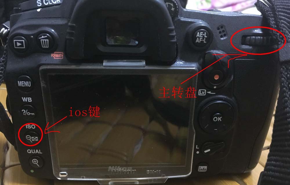 5、在主屏幕中看ios值(红色圈圈部分),调好后松手即可。这里比较推荐用肩屏去看,因为通常都是用目镜看景物的,很少用主屏幕(有延迟)。不用主屏幕的话就看不到iso值了,除非又重新打开主屏幕,比较麻烦。