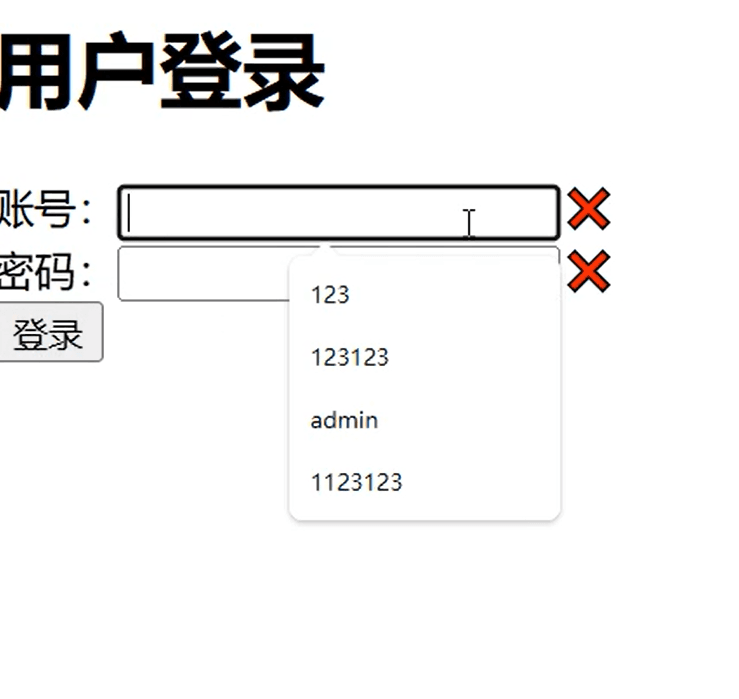<form id="ff" action="https://www.baidu.com"> <h1>用户登录</h1> 账号:<input type="text" id="zh" /> <span></span> <br /> 密码:<input type="password" id="mm" /><span></span> <br /> <Button>登录</Button> </form>