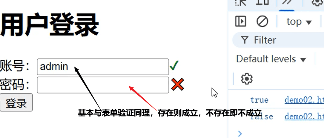 注:当内容存在焦点时则有判断,有内容则成立,无内容则错误,不成立,无法进行表单提交