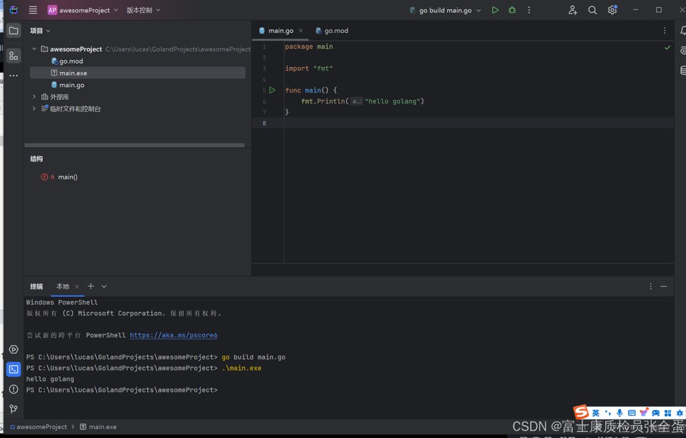 项目执行方式有两种,第一种go build,生成二进制文件main.exe,直接执行即可。