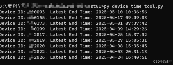 print(f"Device ID: {device_id}, Latest End Time: {latest_end_time}")