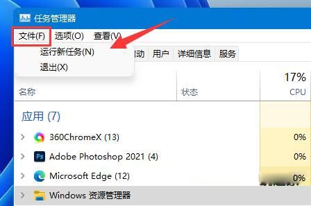 2. 打开后,点击左上角“文件”,点击“运行新任务”。