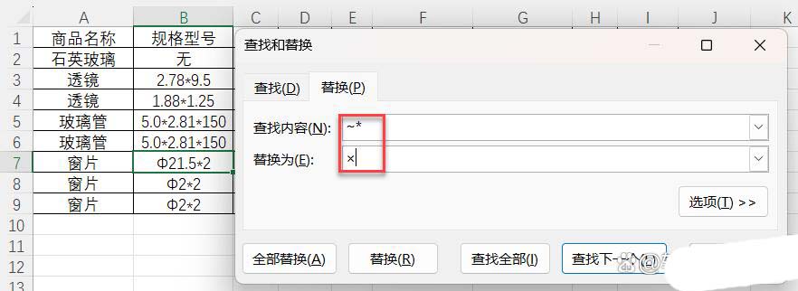 可以将*替换成×,按Ctrl+H,因为*是通配符,查找内容要写~*,全部替换成×。