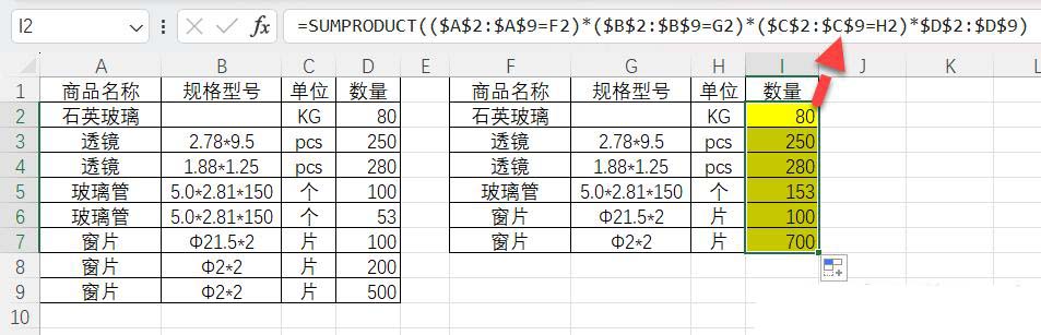 其实,统计用SUMPRODUCT也是一个不错的选择,即使不处理数据源,也可以正常统计。