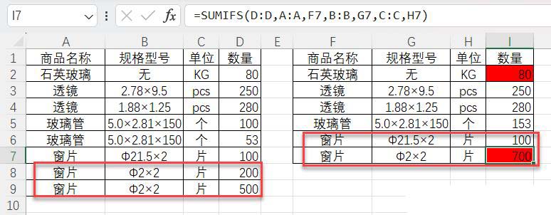 SUMIFS在统计的时候,规格型号不能出现*,这个是通配符。2*2和21.5*2表面看起来不一样,但是前者用通配符,会认为两个一样,从而导致出错。