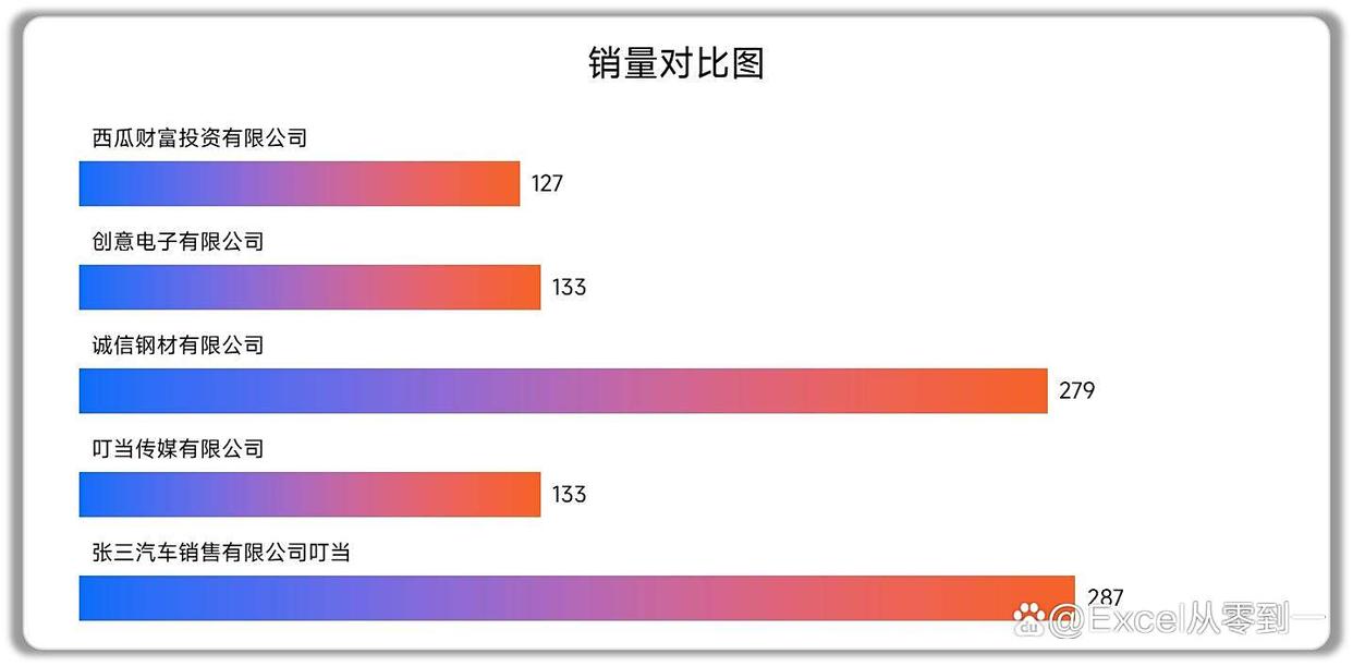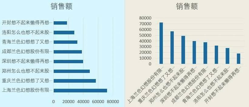 对于名字很长的,图表的选择就比较固定了,建议大家选择条形图,条形图一般都是横着显示,能显示更多的内容,这一点是其他图表无法比拟的