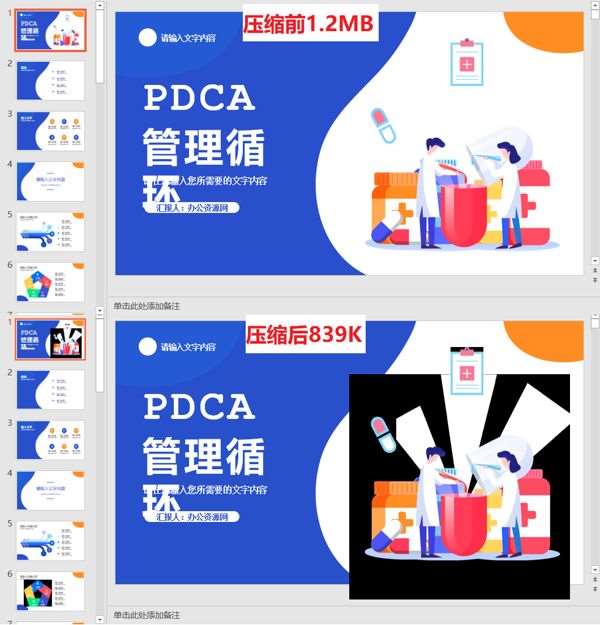压缩减小了PPT文档的31.4%大小,但对PPT内容的画质清晰度基本没有影响,压缩效果好!