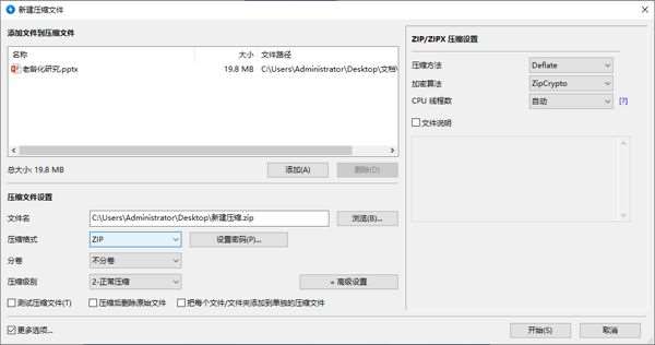 可以设置压缩参数,包括导出格式、存储位置、压缩方法、压缩级别等,还可以对压缩文件进行加密,点击【开始】就可以处理压缩PPT文件了。