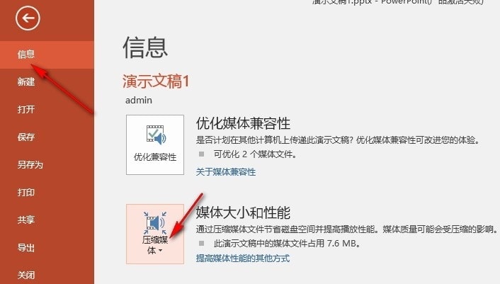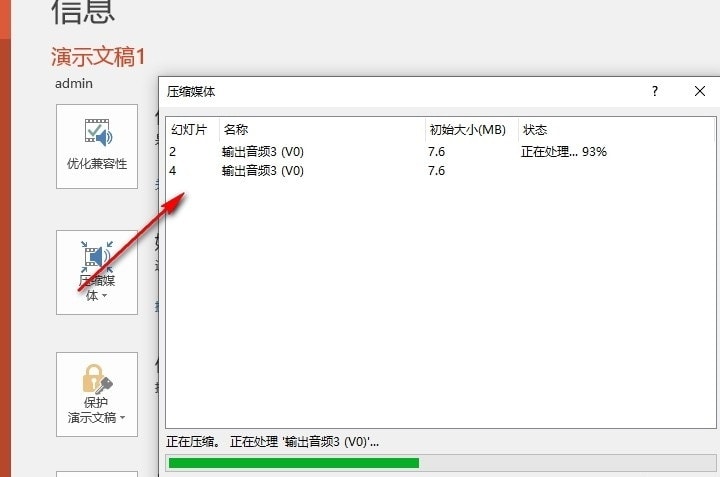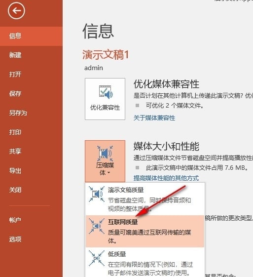 PPT幻灯片演示文稿以互联网质量压缩媒体的方法