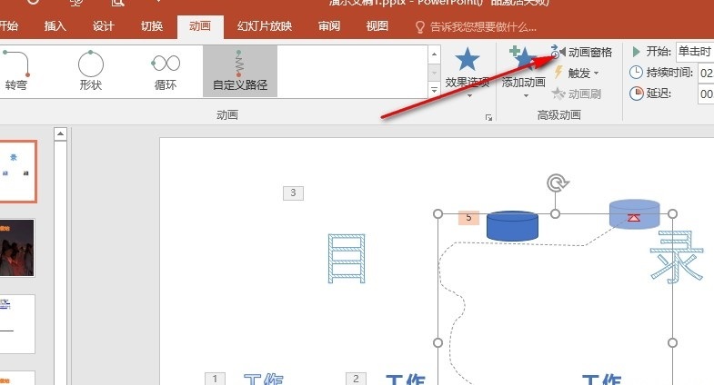 3、第三步,在动画工具的子工具栏中,我们找到“动画窗格”工具,点击打开该工具,进入动画窗格页面