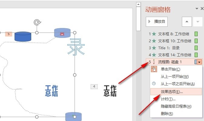4、第四步,在动画窗格中,我们找到形状的运动动画,然后右键单击该动画效果,再打开“效果选项”
