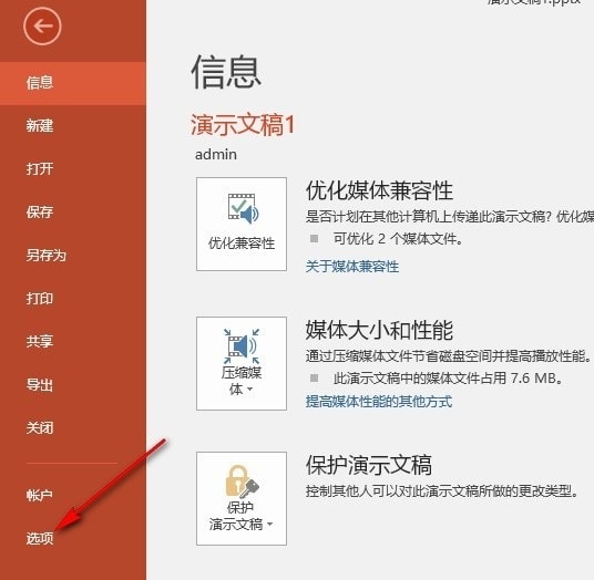 3、第三步,打开“文件”选项之后,我们再在该页面的左侧列表中找到“选项”,点击打开该选项