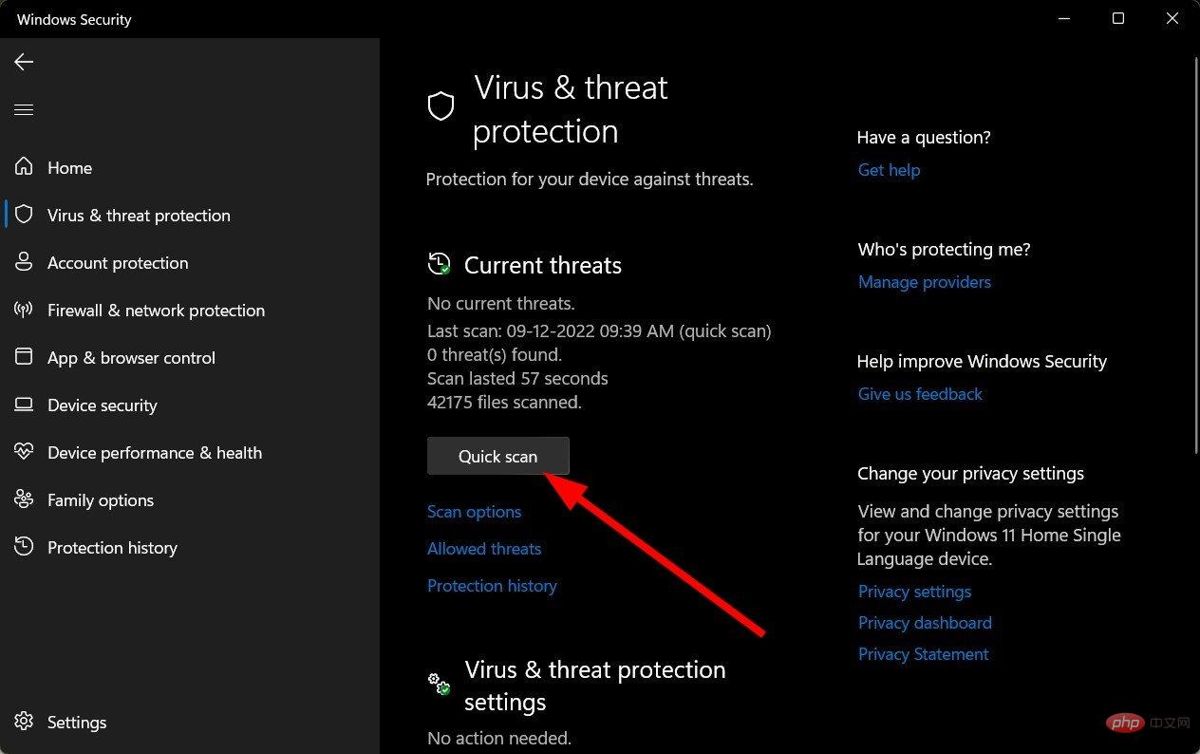 如果您没有发现任何威胁,请单击快速扫描下方的扫描选项继续执行完全扫描。