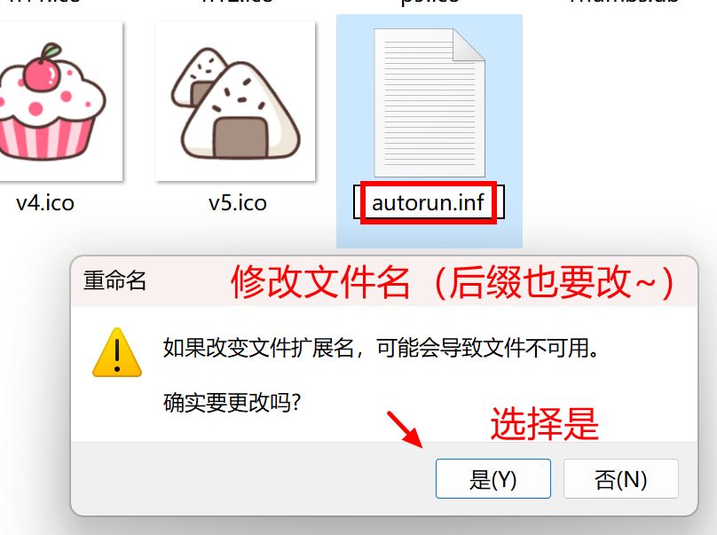 然后,我们把这个文本文档重命名为,autorun.inf,后缀名也要修改的。