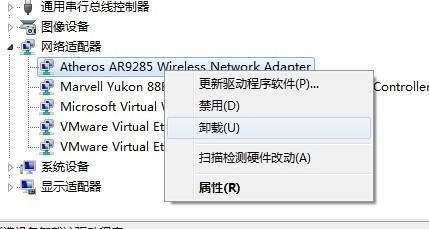 2)重新安装驱动程序:在“设备管理器”中卸载无线适配器的驱动程序,然后重启电脑让Windows自动重新安装驱动。