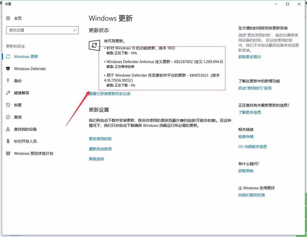 然后,我们再次打开Windows的更新和安全窗口,点击“重试”按钮 ,这时可以看到Windows10系统可以检查更新,并自动下载安装系统更新了。如图: