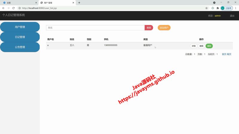 以上就是基于javaweb+jsp实现个人日记管理系统的详细内容,更多关于javaweb jsp个人日记管理系统的资料请关注其它相关文章!
