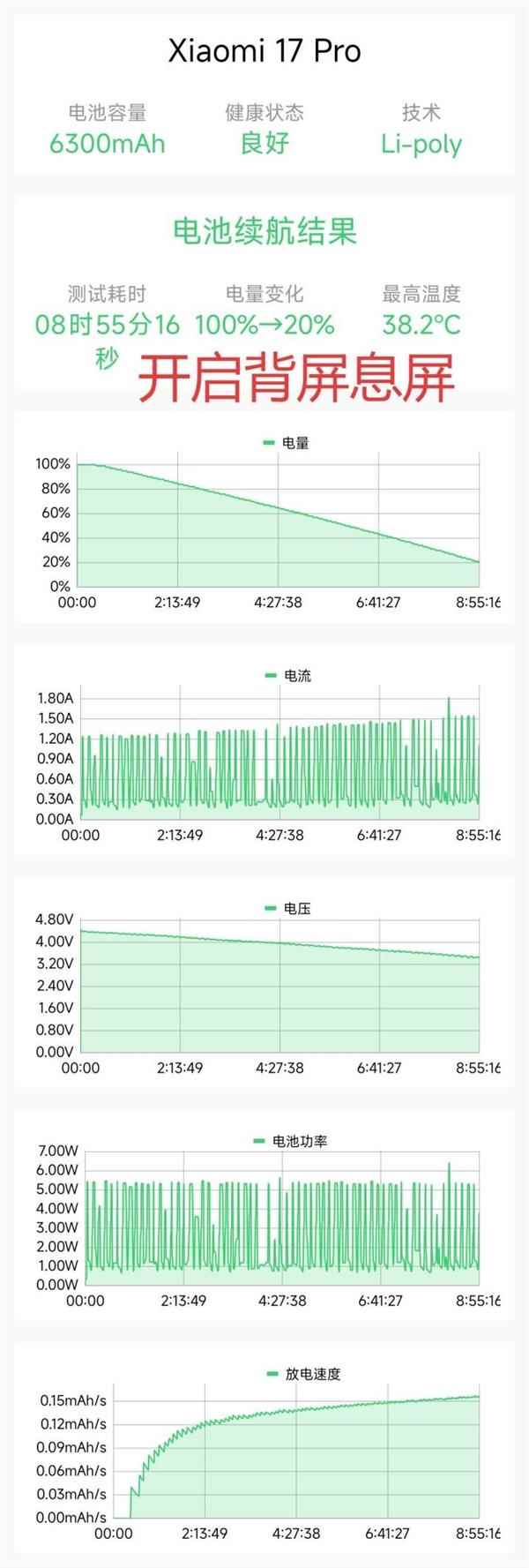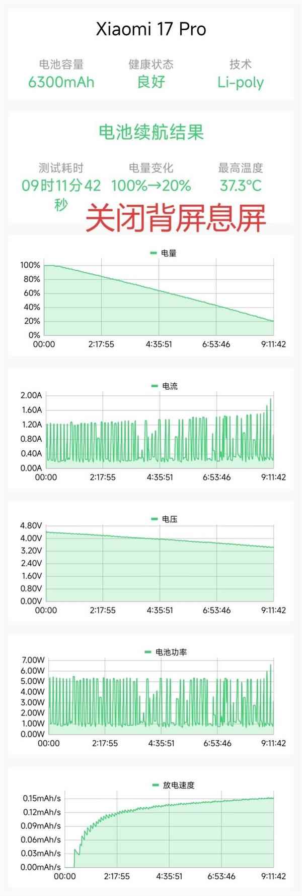 同时,因为小米17Pro系列背屏的存在,我们分别开启和关闭背屏息屏显示,测试两次电池续航。