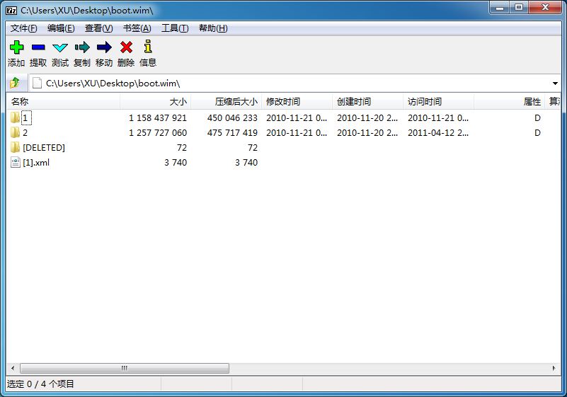 4、这样我们就可以直接看到当前 boot.wim 文件中的相关内容了。其实 win 或 wim 都是一些压缩包格式的,只不过被一些技术人员修改了后缀以防止别人修改而已。