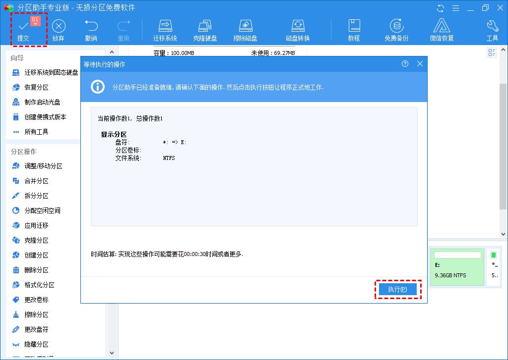 4. 返回软件主界面后,再单击左上角的“提交”和“执行”以应用挂起的操作。