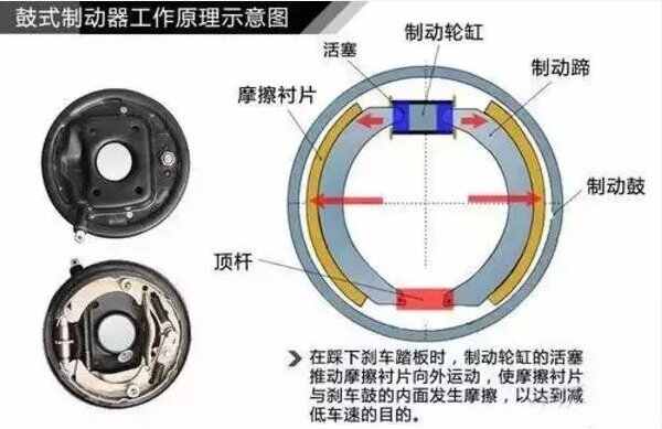 鼓式刹车和盘式刹车工作原理和结构图详解