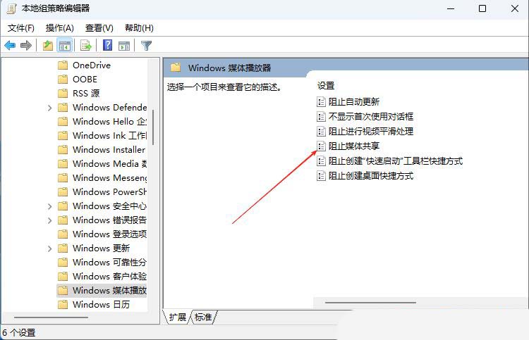 3、然后,双击打开其中的“阻止媒体共享”设置;