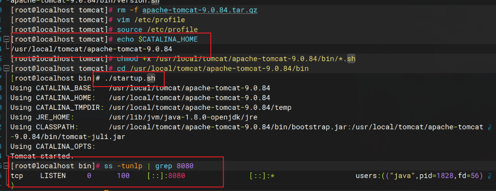 cd /usr/local/tomcat/apache-tomcat-9.0.84/bin ./startup.sh