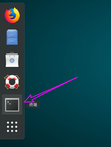 2、点侧边栏的【终端】图标按钮,打开【终端】程序,