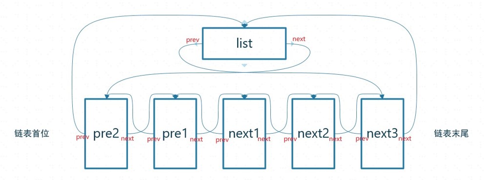 即,后面一个节点的prev指向前面一个节点,前面一个节点的next指向后面。