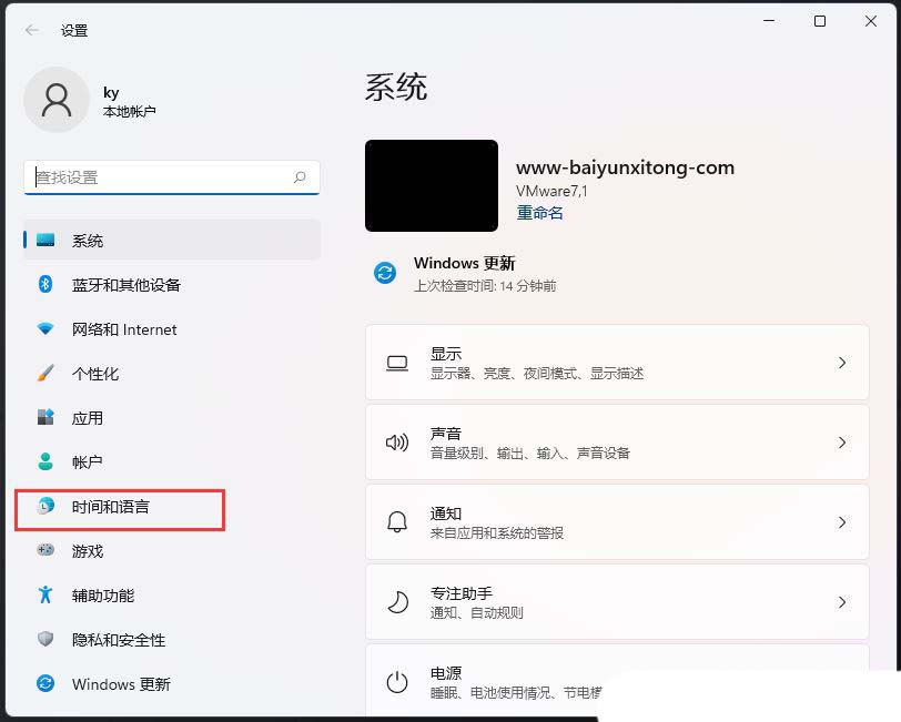2、Windows 设置窗口,左侧边栏,点击【时间和语言】;
